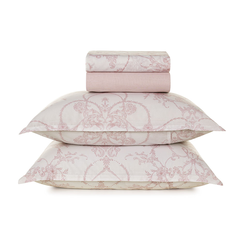 King: 1 Lençol de elástico 1,93m x 2,03m x 35cm, 1 Sobre lençol 2,90m x 2,40m, 2 fronhas 50cm x 70cm sem abas.